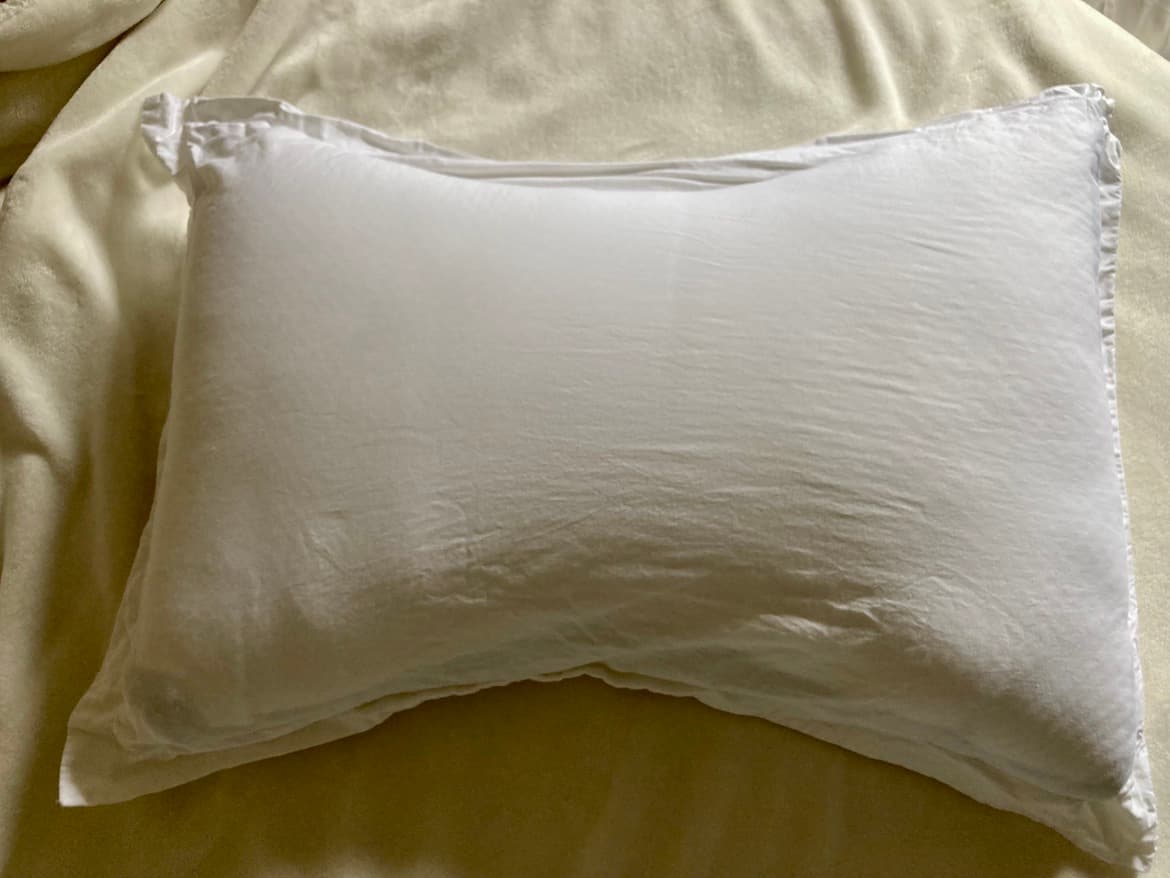 To truly test how well this pillow treated my shot shoulders, I slept on this pillow every night for one month. I banished my other pillows from my bed, except for the one I tuck between my knees to help keep my spine aligned near my hips, and kept all my usual sleeping conditions the same including the rest of my bedding. Besides this pillow, the only other items on my bed were my cotton sheets, wool blanket, and cotton bedspread.