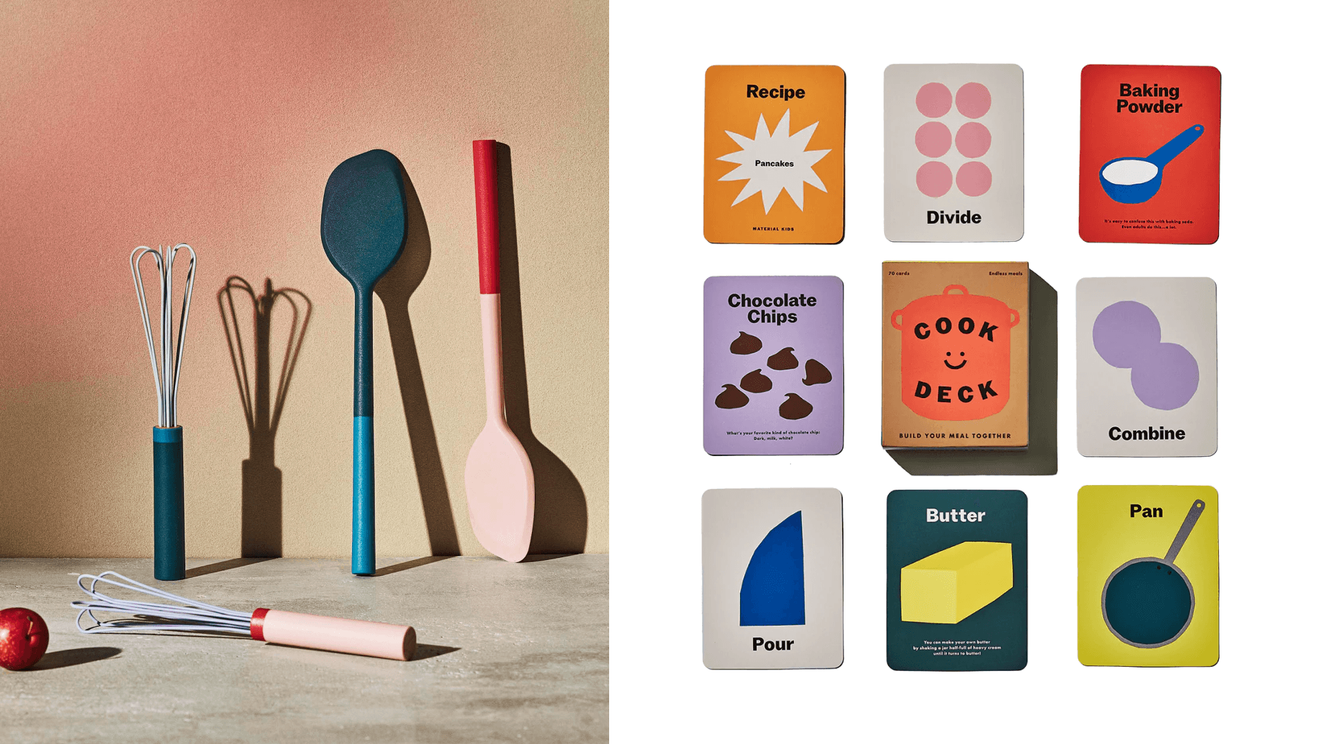 Having extra hands in the kitchen can be a huge help, especially when you've got tons of cookies to mold and dough to roll. This adorable set will help your kid(s) feel included. It includes a mini whisk, spatula, and cooking card game. Now you've got a tiny sous-chef in the making. ($45, Material Kitchen)