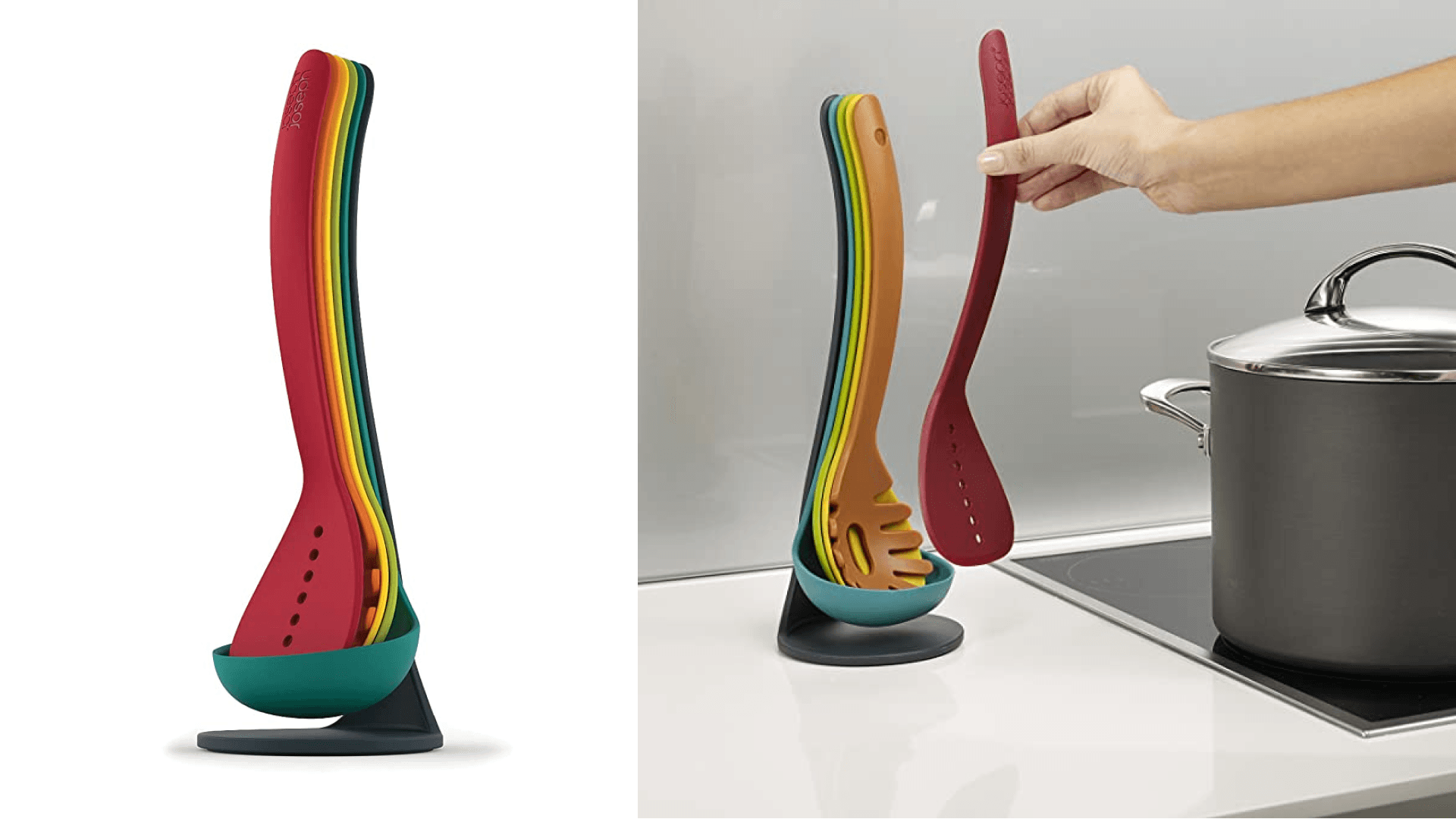 We’re talking a slotted spoon, solid spoon, spatula, turner, and cutting tool. So you can flip, cut, scoop, and spread. When you think about it, this means you’ll have less to wash once your meal is ready. Sunday meal prep has never been this easy. ({{dynamicPrice}}, Amazon)